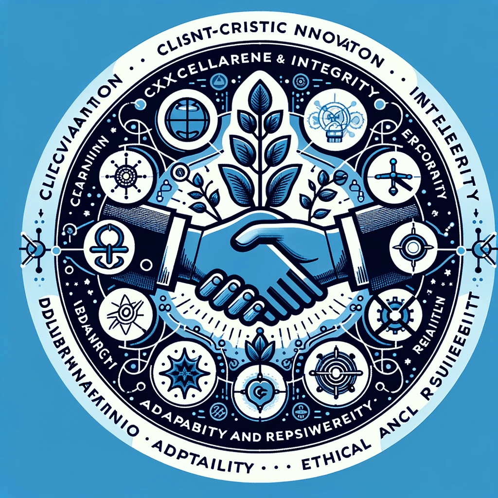 Client-Centric Innovation: SprintEx delivers solutions tailored to meet specific client needs, combining innovative technology with strategic project management.Excellence and Integrity: Upholding the highest standards of excellence, with integrity at every decision's core.Collaboration and Empowerment: Belief in teamwork and knowledge sharing, empowering clients and employees.Adaptability and Resilience: Providing adaptable and resilient solutions amidst evolving business and technology landscapes.Sustainability and Ethical Responsibility: Committed to sustainable and ethically responsible practices, aiming for a positive societal and environmental impact.